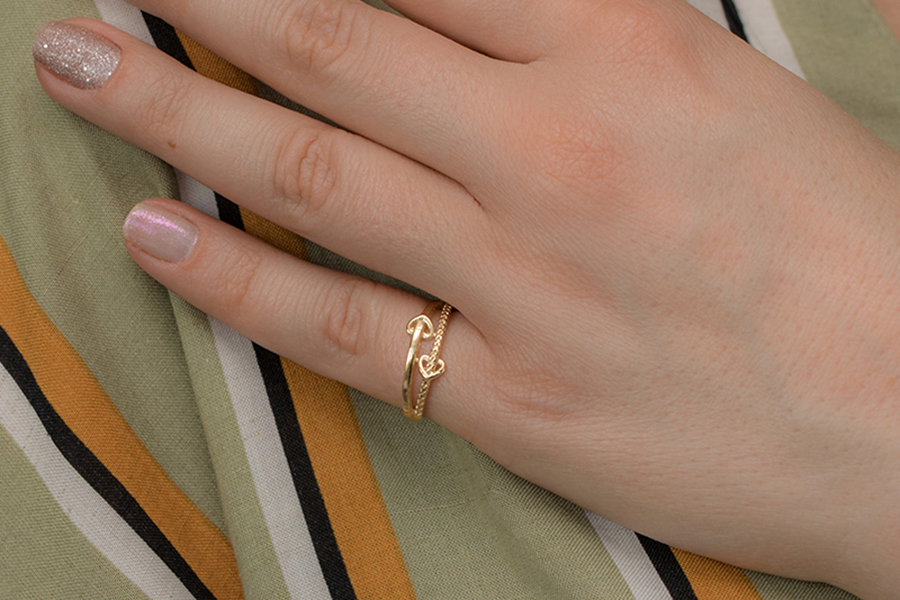 ANEL BANHADO EM OURO, CORAÇÃO 5,70mm ALTURA