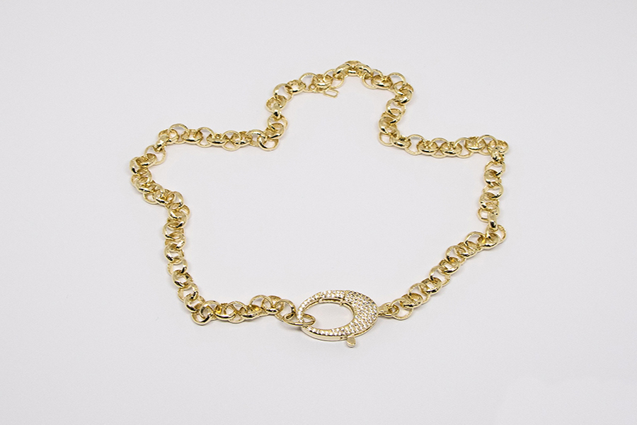 GARGANTILHA BANHADA EM OURO, ELO OVAL 29X20mm, 45cm COMPRIMENTO E FECHO DE ZIRCÔNIA 28mm ALTURA