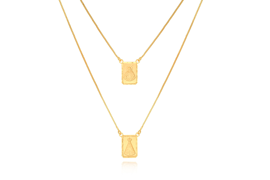 ESCAPULÁRIO EM PRATA, NOSSA SENHORA APARECIDA 14mm ALTURA, ELO CARTIER ALONGADO, 70cm COMPRIMENTO