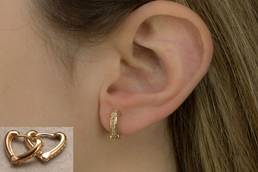 BRINCO BANHADO EM OURO, CORAÇÃO E PONTO DE LUZ 6mm ALTURA