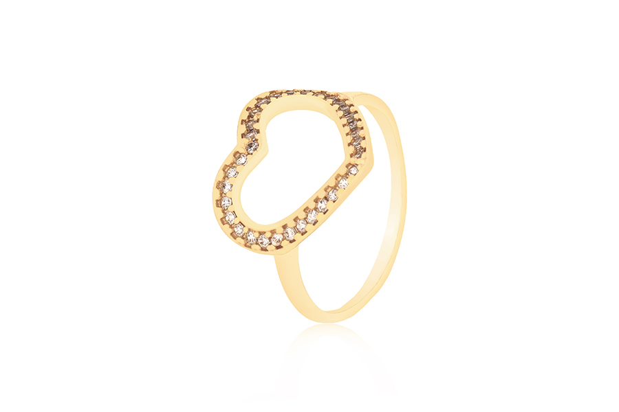 ANEL BANHADO EM OURO, CORAÇÃO LISO E ZIRCÔNIA, 3,40mm LARGURA