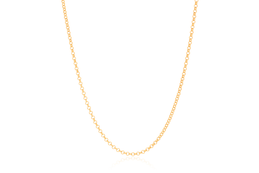 CORRENTE BANHADA EM OURO, ELO PORTUGUÊS 7mm DIÂMETRO, 1,90mm ESPESSURA, 45cm COMPRIMENTO E PESO 28,70g
