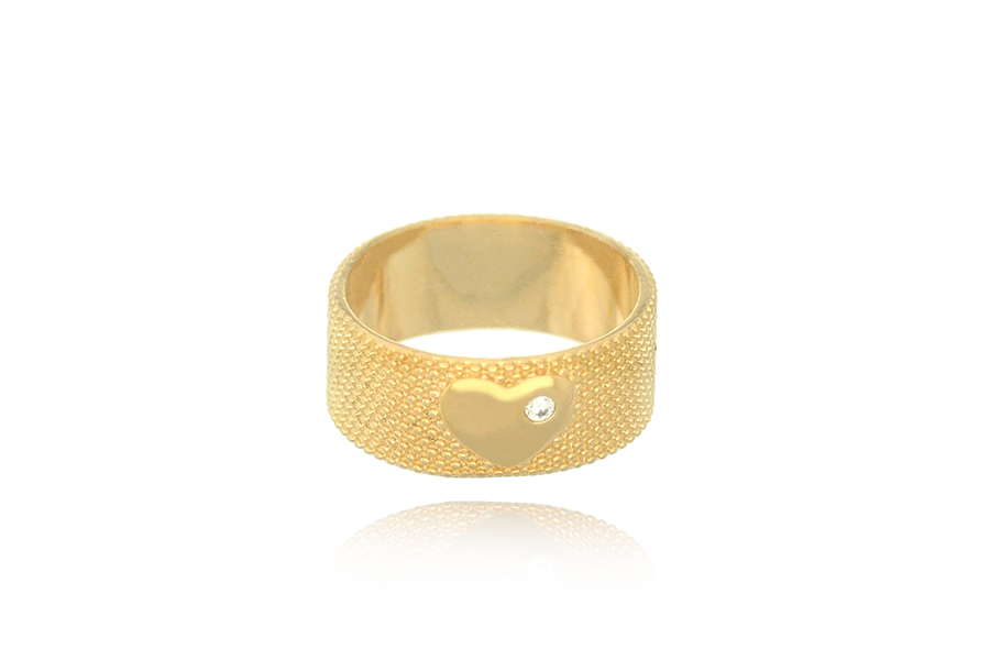 ANEL BANHADO EM OURO, CORAÇÕES, 15mm LARGURA
