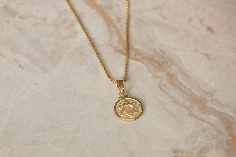 PINGENTE BANHADO EM OURO, ESTRELA DE DAVI 24mm LARGURA