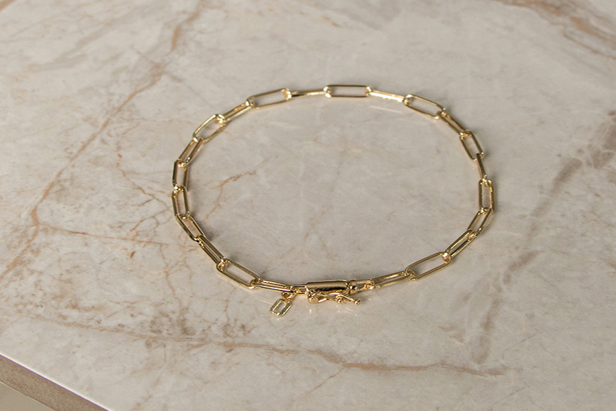 PULSEIRA BANHADA EM OURO, CORRENTE ELO CARTIER 8,50x3,30mm, 19 E 20cm COMPRIMENTO E PESO 3,30g