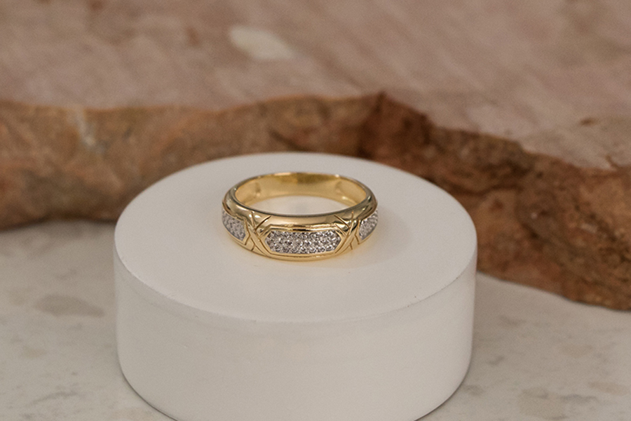 ANEL BANHADO EM OURO, 7,40mm LARGURA E CRUZ