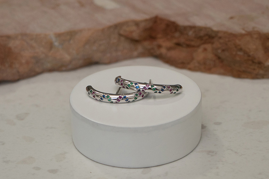 BRINCO BANHADO EM PRATA LEVE, COM PREÇO PROMOCIONAL, PEDRAS