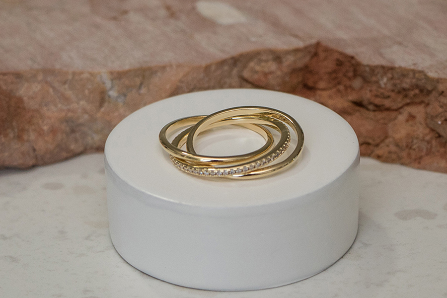 ANEL BANHADO EM OURO, COM ZIRCÔNIAS