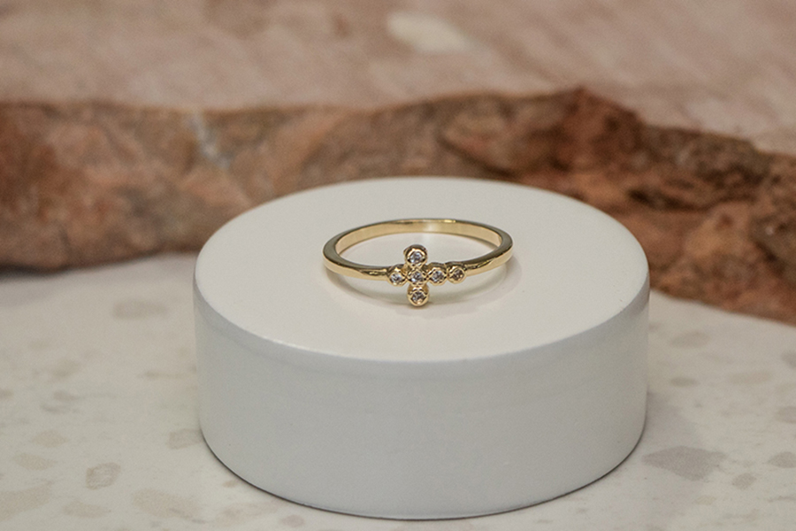 ANEL EM PRATA, CRUZ CRAVEJADA 14,50mm ALTURA