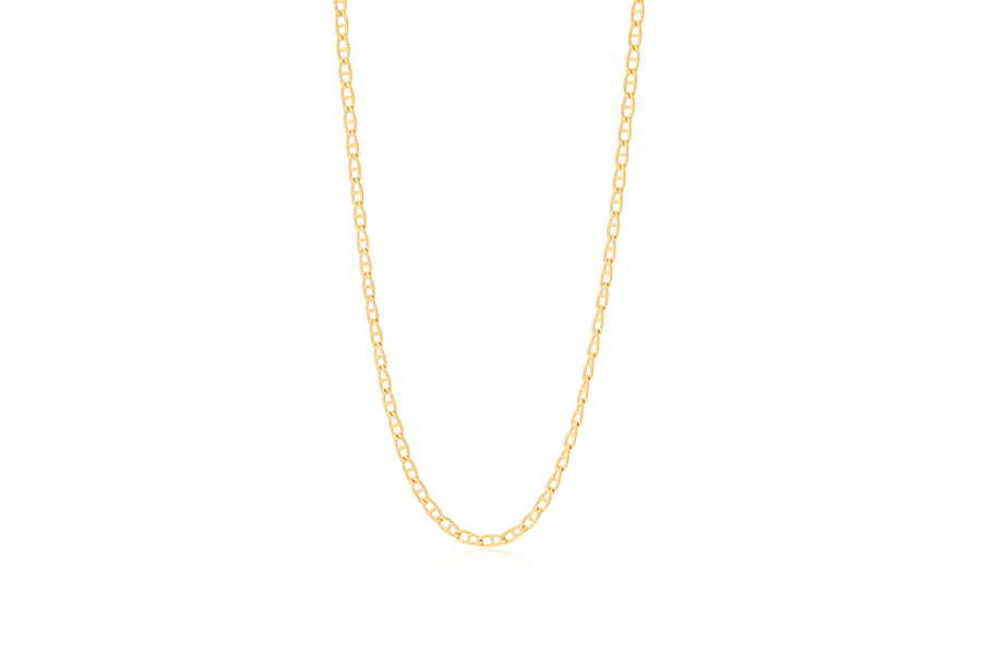 CHOKER BANHADA EM OURO, CORRENTE ELO 2,50mm LARGURA, 35cm COMPRIMENTO, EXTENSOR 10cm COMPRIMENTO E PESO 6,80g