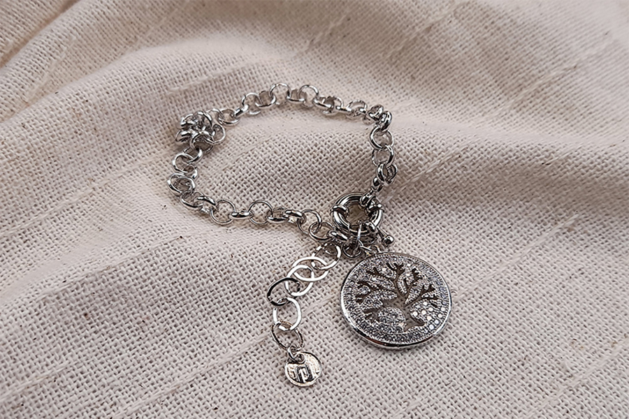 PULSEIRA BANHADA EM RÓDIO BRANCO, ELO PORTUGUÊS 3mm, 16cm COMPRIMENTO E PINGENTE ''FOREVER AND ALWAYS'' 17,50mm DIÂMETRO