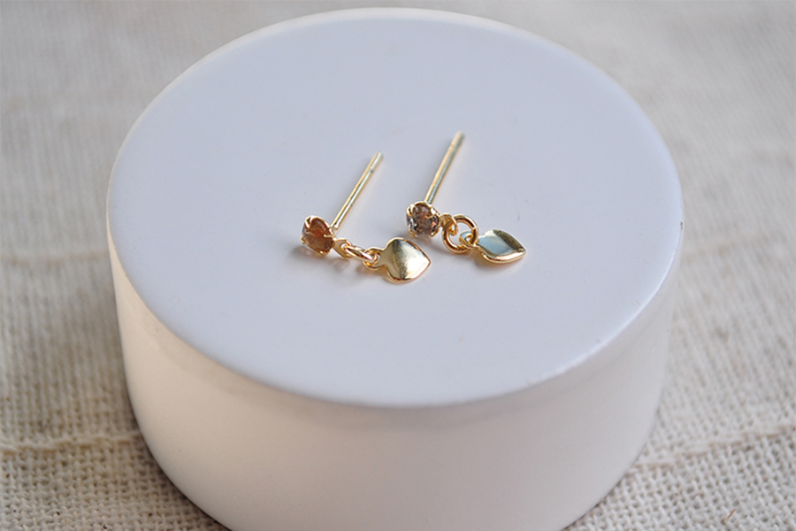 BRINCO BANHADO EM OURO, INFANTIL, CORAÇÃO 4,50mm LARGURA, COM TARRAXA BABY