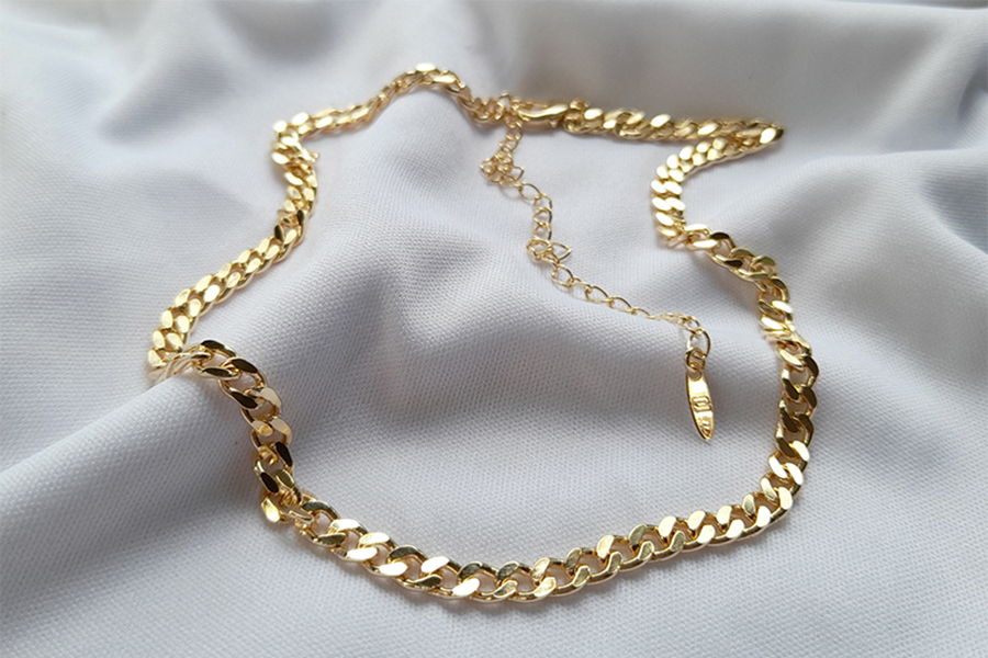 CORRENTE BANHADA EM OURO, ELO 4mm LARGURA, 60cm COMPRIMENTO E PESO 10g