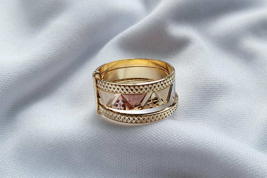 ANEL BANHADO EM OURO E RÓDIO BRANCO, TRIPLO