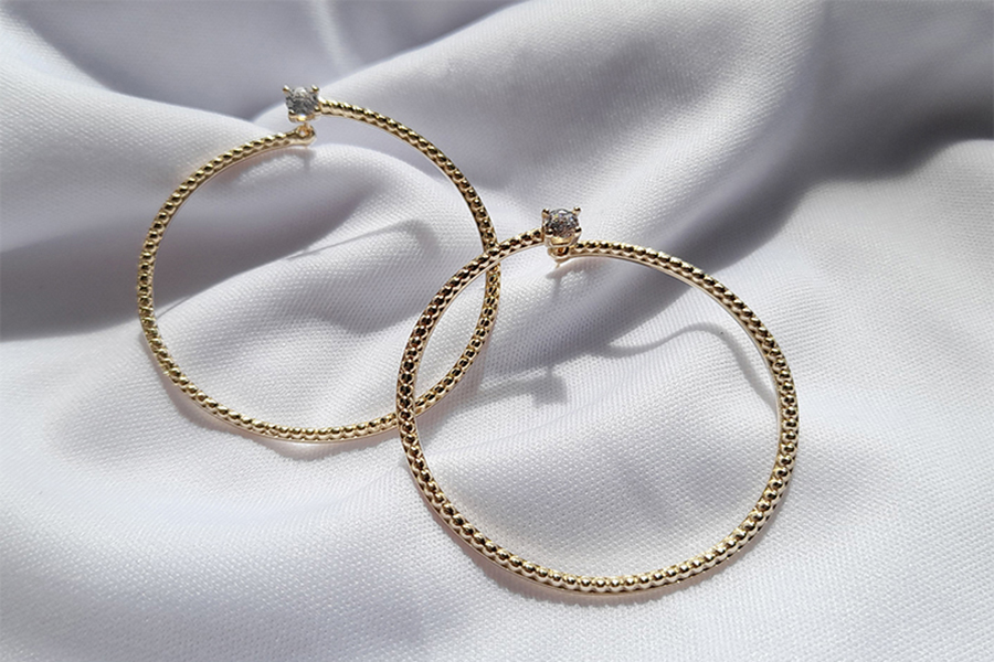 BRINCO BANHADO EM OURO, PONTO DE LUZ 8mm, LINHA TRADICIONAL