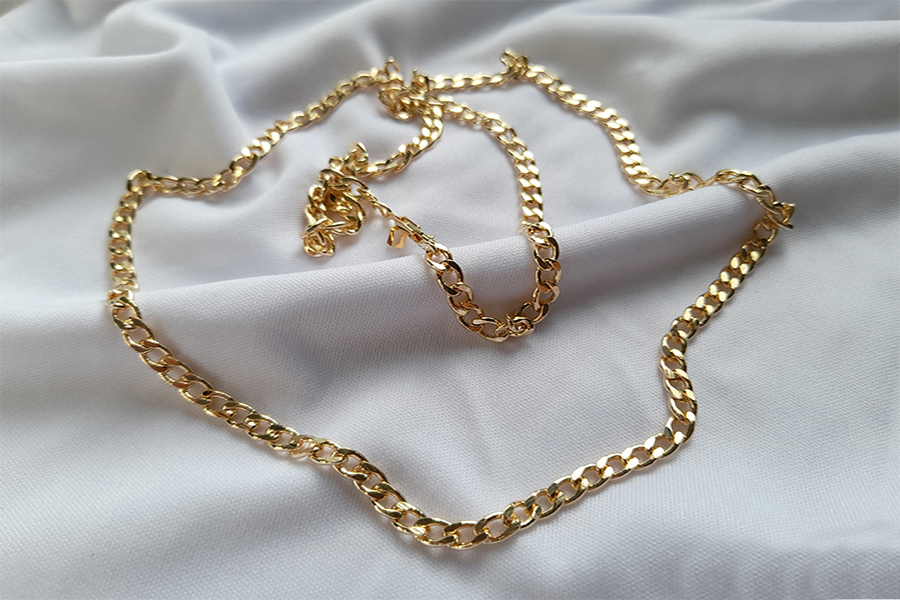 CHOKER BANHADA EM OURO, CORRENTE ELO 4,10mm LARGURA, 34cm COMPRIMENTO E PESO 11,10g