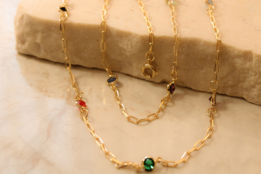 CHOKER BANHADA EM OURO, ELO 1,20mm LARGURA, 35cm COMPRIMENTO E CORAÇÃO 4,50mm LARGURA, QUALQUER COR DE PEDRA