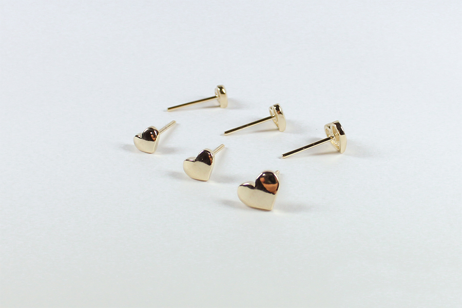 CONJUNTO BANHADO EM OURO, TRIO DE BRINCOS DE PÉROLA CORAÇÃO 5mm, 6,50mm E 8mm ALTURA