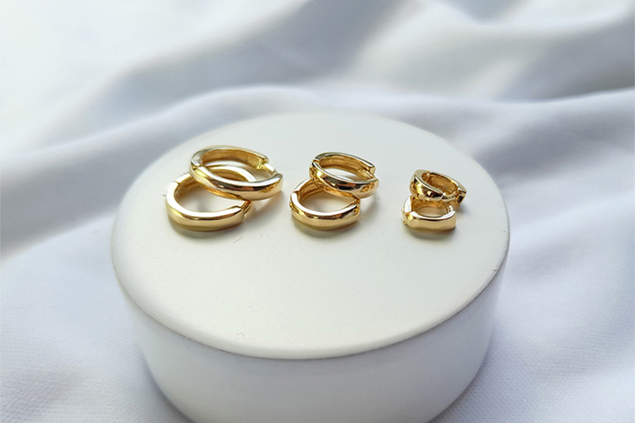 CONJUNTO BANHADO EM OURO, TRIO DE BRINCOS QUADRADO 7mm COM ZIRÔNIA, LISO 8mm E LISO 6,50mm