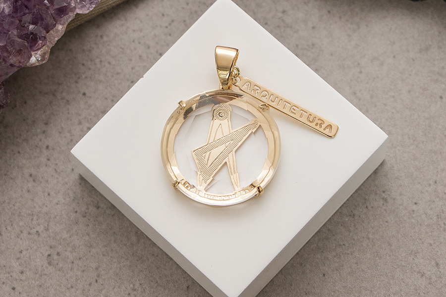 PINGENTE BANHADO EM OURO, CRISTAL REDONDO 26mm, BIOMEDICINA