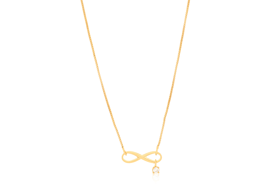 GARGANTILHA BANHADA EM OURO, ELO VENEZIANA 0,80mm, 42cm COMPRIMENTO E ZIRCONIA GOTA 10X7mm, PARA QUALQUER COR DE PEDRA
