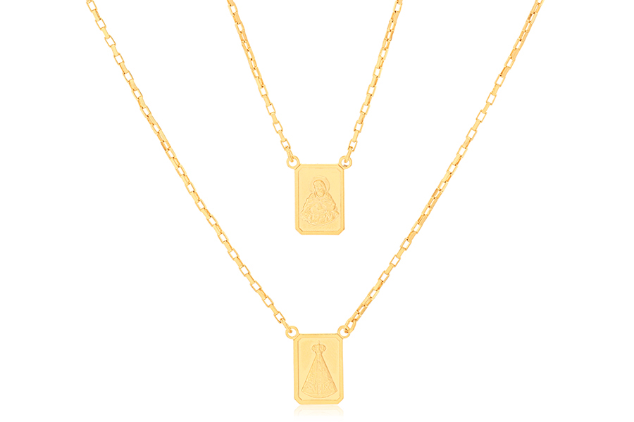 GARGANTILHA BANHADA EM OURO, VENEZIANA 0,80mm, 42cm COMPRIMENTO E NOSSA SENHORA APARECIDA 20X16mm