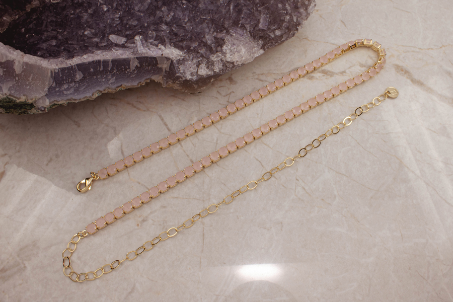 GARGANTILHA BANHADA EM OURO, CRISTAL GOTA 28X17mm, 22X16mm, 19X13mm, 13X10mm, ELO CARTIER 5,10X2,70mm, 40cm COMPRIMENTO, COLEÇÃO PINK