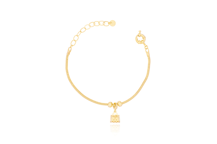 PULSEIRA BANHADA EM OURO, ELO 2,30mm LARGURA, 16cm COMPRIMENTO, EXTENSOR 5cm COMPRIMENTO E CORAÇÃO 7mm LARGURA, PARA QUALQUER COR