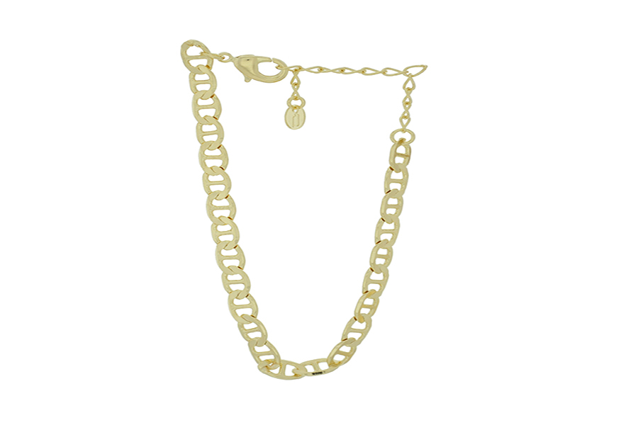 PULSEIRA BANHADA EM OURO, CORRENTE ELO PORTUGUÊS 2,50mm, 17cm COMPRIMENTO, EXTENSOR 5cm COMPRIMENTO E PESO 2,20g