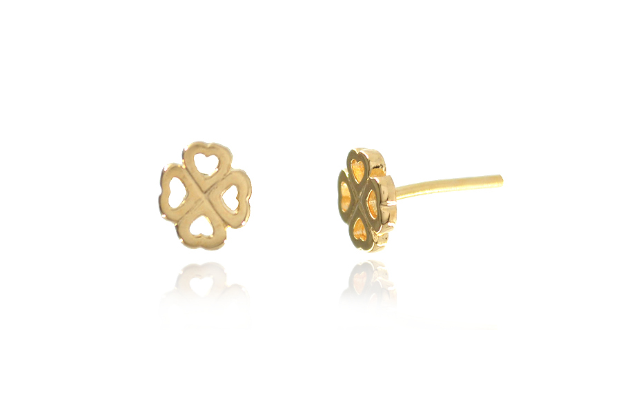 BRINCO BANHADO EM OURO, INFANTIL, PONTO DE LUZ E CORAÇÃO 4,50mm LARGURA, COM TARRAXA BABY