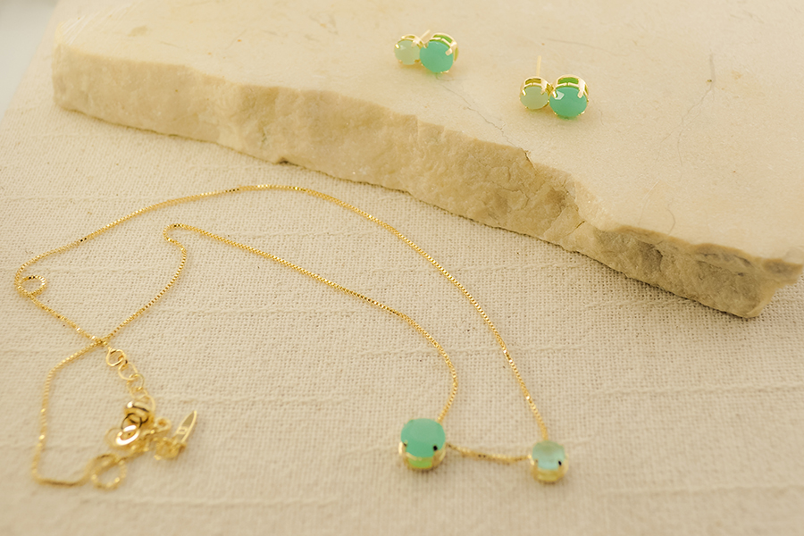 CONJUNTO BANHADO EM OURO, COM PREÇO PROMOCIONAL, PEDRAS