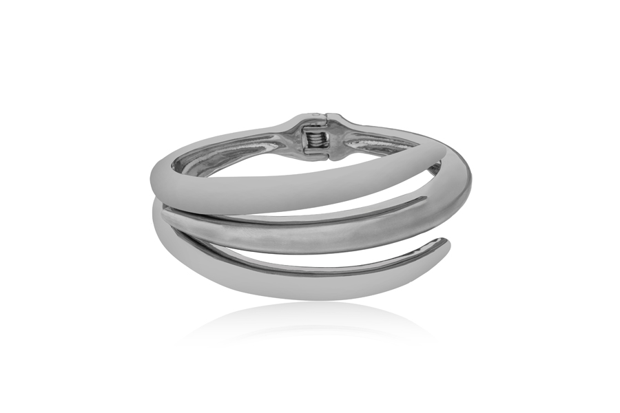 BRACELETE BANHADO EM RÓDIO BRANCO, 7cm COMPRIMENTO, COM ZIRCÔNIAS NAS LATERAIS