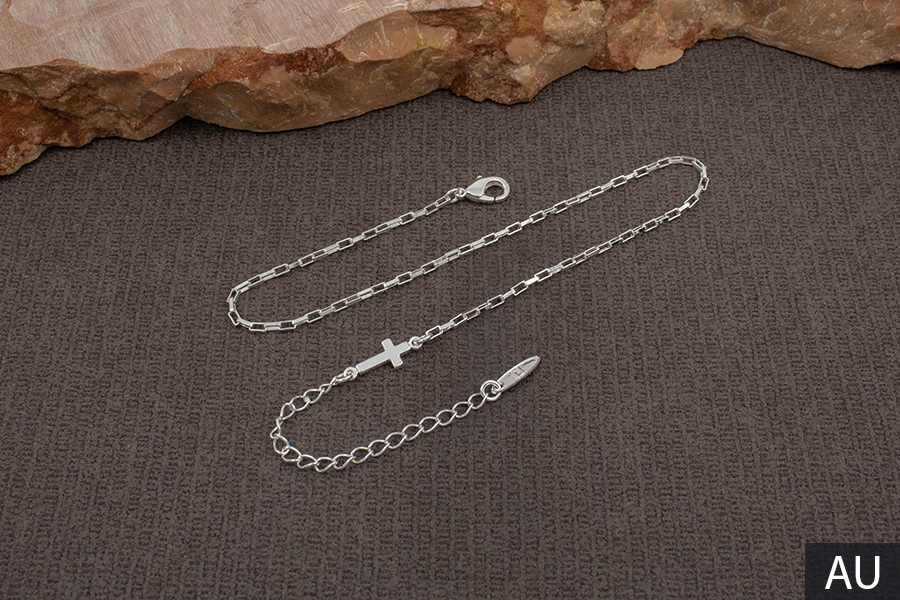 TORNOZELEIRA BANHADA EM RÓDIO BRANCO, CORRENTE ELO PIASTRINE 2,40mm LARGURA, 23cm COMPRIMENTO