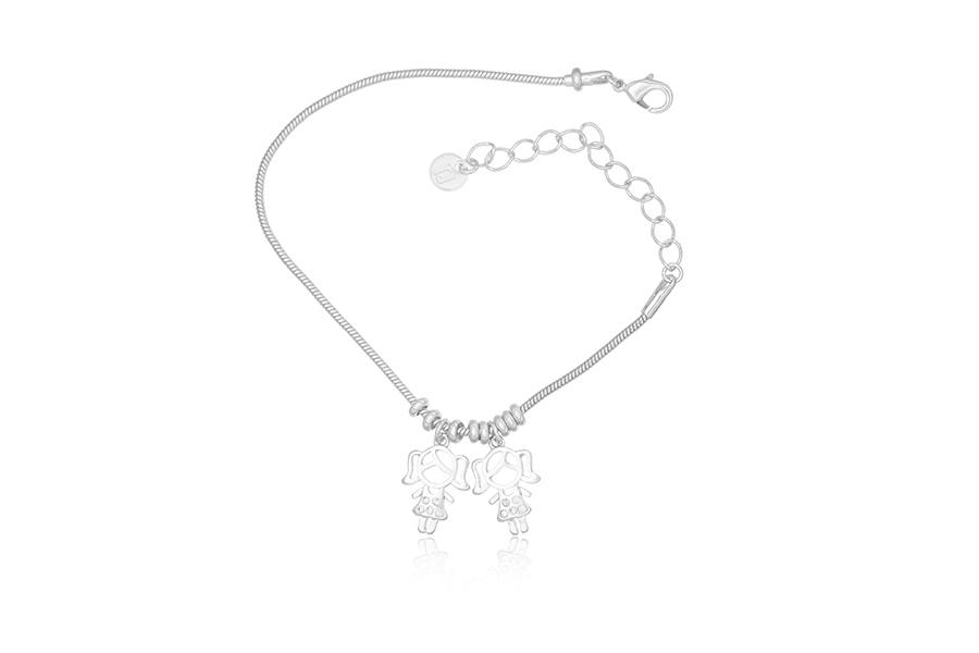 PULSEIRA BANHADA EM PRATA LEVE, ELO OVAL 1,20mm LARGURA, 16cm COMPRIMENTO, EXTENSOR 5cm COMPRIMENTO, 2 MENINAS