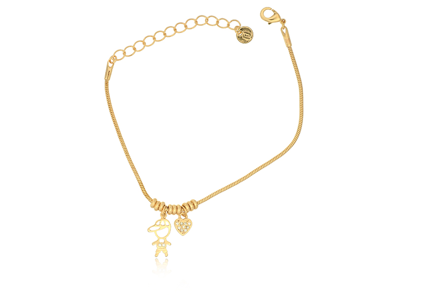 PULSEIRA INFANTIL BANHADA EM OURO, VENEZIANA LONGA 1,50mm ESPESSURA E CHAPINHA COM MENINO 24mm COMPRIMENTO