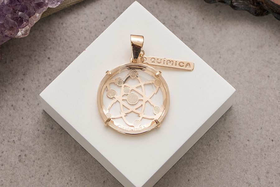 PINGENTE BANHADO EM OURO, CRISTAL REDONDO 26mm, PEDAGOGIA