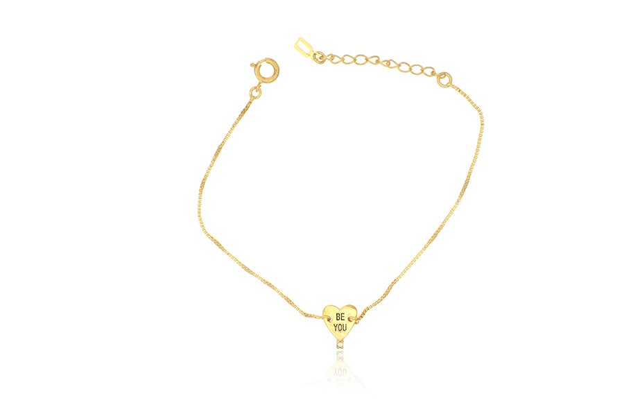 PULSEIRA BANHADA EM OURO, ELO PORTUGUÊS 7mm DIÂMETRO, 2,50mm ESPESSURA E CORAÇÃO 27mm LARGURA, LISO OU ACETINADO