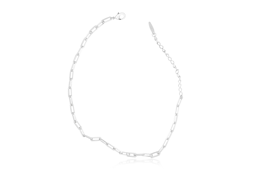 TORNOZELEIRA BANHADA EM RÓDIO BRANCO, CORRENTE ELO PIASTRINE 2,40mm LARGURA, 23cm COMPRIMENTO