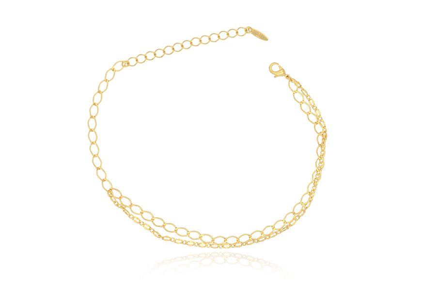 TORNOZELEIRA BANHADA EM OURO, ELO CORRENTE COM CÍRCULOS, 21cm COMPRIMENTO E EXTENSOR 5cm COMPRIMENTO