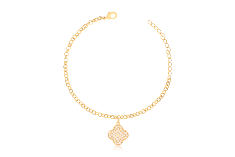 PULSEIRA BANHADA EM OURO, CRISTAL, ELO PORTUGUÊS 7mm DIÂMETRO, 1,90mm ESPESSURA E PINGENTE BONECOS 20mm DIÂMETRO