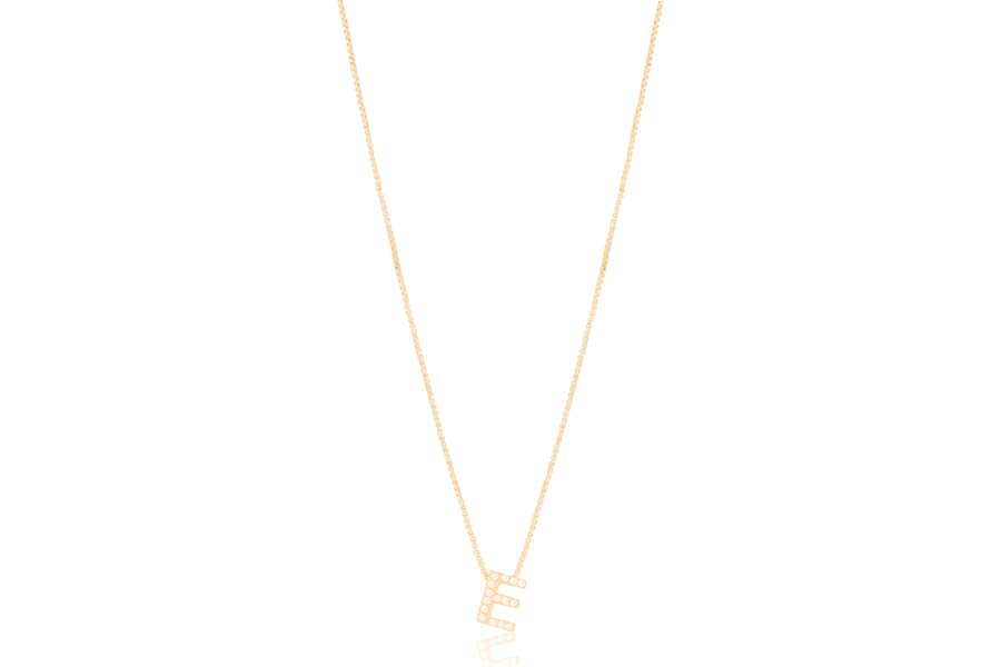 GARGANTILHA BANHADA EM OURO, ELO 0,70mm, 40cm COMPRIMENTO, EXTENSOR 10cm COMPRIMENTO, LETRA Q, 11mm ALTURA E PONTO DE LUZ 3mm