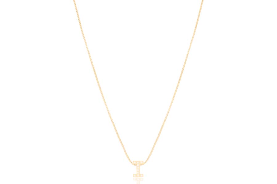 GARGANTILHA BANHADA EM OURO, ELO 0,70mm, 40cm COMPRIMENTO, EXTENSOR 10cm COMPRIMENTO, LETRA Q, 11mm ALTURA E PONTO DE LUZ 3mm