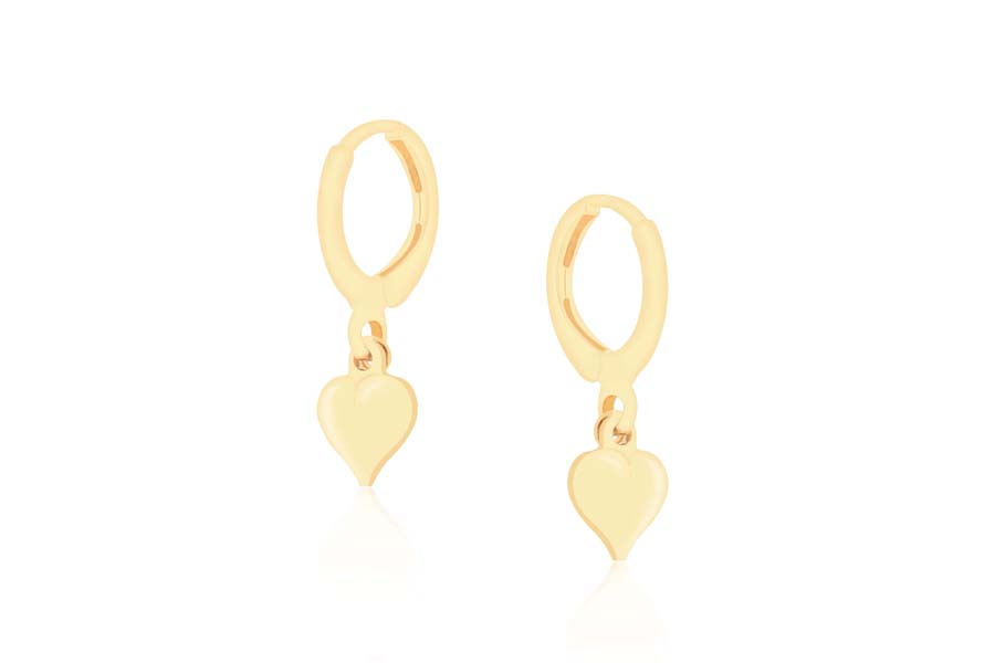 BRINCO BANHADO EM OURO, INFANTIL, PONTO DE LUZ E CORAÇÃO 4,50mm LARGURA, COM TARRAXA BABY