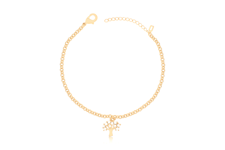 PULSEIRA BANHADA EM OURO, ELO DUPLO 1,60mm ESPESSURA, 16cm COMPRIMENTO E ÁRVORE DA VIDA 16mm DIÂMETRO