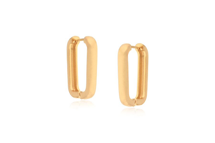 BRINCO BANHADO EM OURO, CORAÇÃO 21mm LARGURA, LISO OU ACETINADO