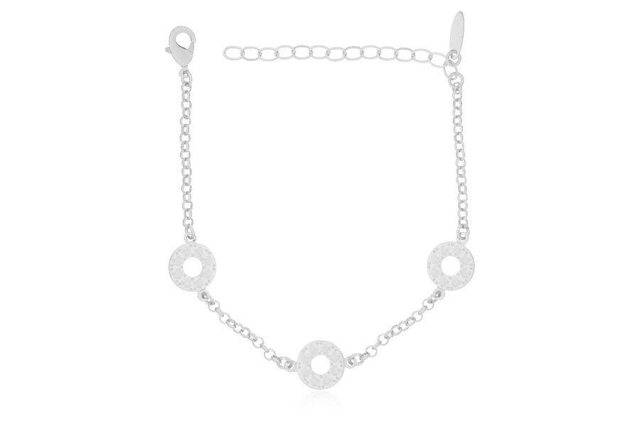 PULSEIRA BANHADA EM RÓDIO BRANCO, FECHO CLICK RETANGULAR CRAVEJADO 7mm LARGURA, ELO PALMEIRA, 18cm COMPRIMENTO