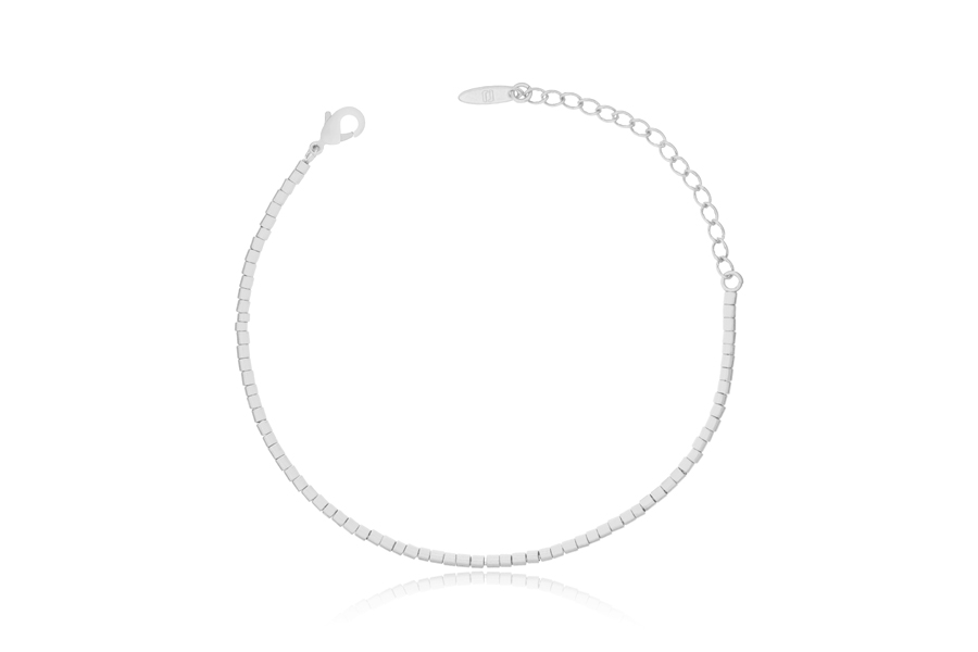 PULSEIRA BANHADA EM RÓDIO BRANCO, FECHO CLICK RETANGULAR CRAVEJADO 7mm LARGURA, ELO PALMEIRA, 18cm COMPRIMENTO