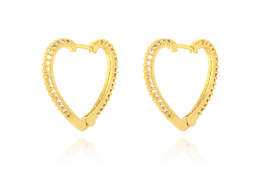 BRINCO BANHADO EM OURO, CORAÇÃO 4mm LARGURA, PARA QUALQUER COR DE PEDRA