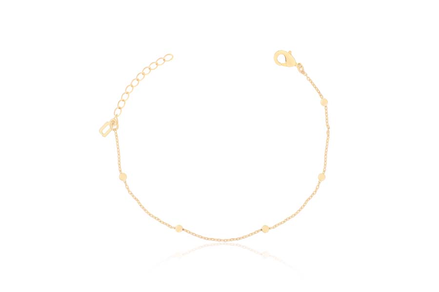 PULSEIRA BANHADA EM OURO, ESFERA 16,50mm DIÂMETRO, ELO PORTUGUÊS 7mm DIÂMETRO E 2,50mm ESPESSURA, 17cm COMPRIMENTO
