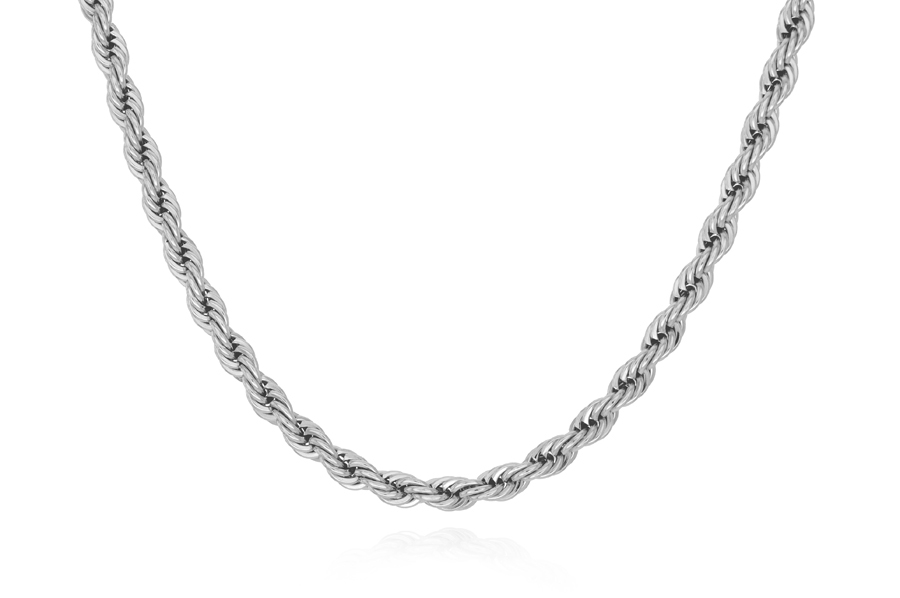 CHOKER BANHADA EM RÓDIO BRANCO, CORRENTE ELO VENEZIANA 0,80mm, 35cm COMPRIMENTO, EXTENSOR 10cm COMPRIMENTO E PESO 1,80g